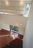 吹抜けの周りには本棚・書斎のあるギャラリーが取り囲む。通風と省エネルギーも熟慮された温水床暖房・オール電化住宅である。