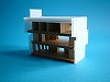 南側開口を広く取り、前面にある隣地マンションの公園の環境を利用しようと考えた案。南面する縁側の特長をすべての階、部屋で満足させるような単純な構成ではあるが、各階によって南側の道路からの距離を変え、室内空間や立面に変化をあたぇている。